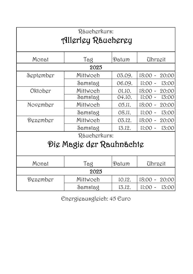 Wir freuen uns sehr, dass ihr euch für unseren Räucherkurs "Allerley Räucherey" interessiert!
